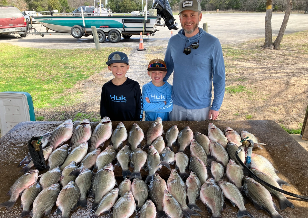 Lake Tawakoni is known for producing strong striper and hybrid striper fishing. These photos highlight both quality fish and consistent action throughout the year.